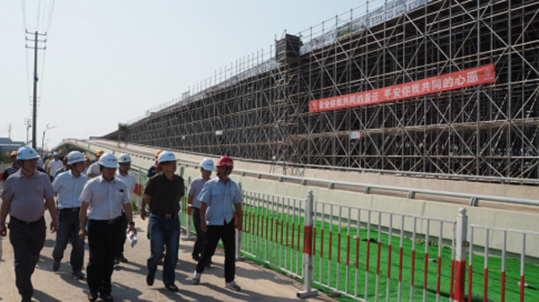 在全國第十六個“安全生產月”來臨之際,為檢驗集團應急救援的快速反應能力,鍛煉應急隊伍,6月14日下午,集團安委會主辦、工建集團承辦的城投集團《生產安全事故綜合應急預案》應急演練在太原路跨鐵路高架橋工程項目展開。集團領導于志軍副總經理、工建集團董事長幺子寅及集團相關部門、各產業集團、直屬公司分管領導及安全生產主管人員等60多人,到場觀摩了演練全過程。
