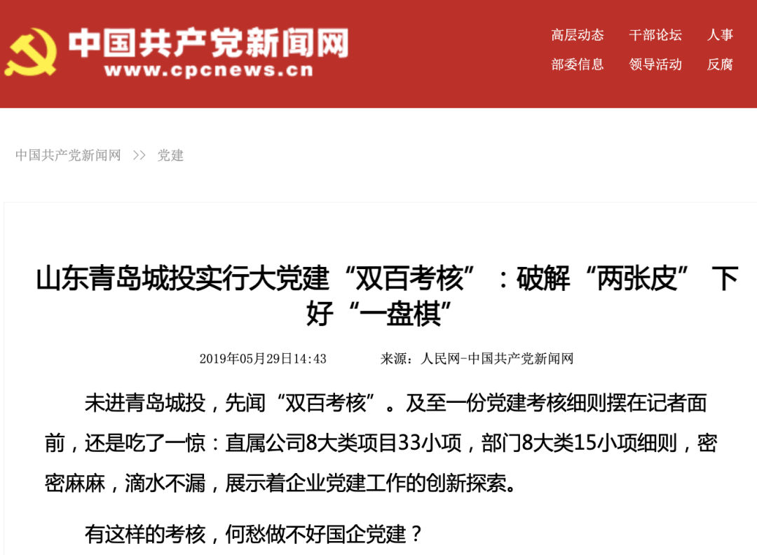(圖為中國共產(chǎn)黨新聞網(wǎng)報道城投集團“雙百考核”)