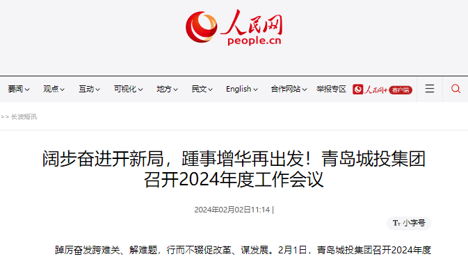 • 人民網:闊步奮進開新局,踵事增華再出發!青島城投集團召開2024年度工作會議